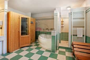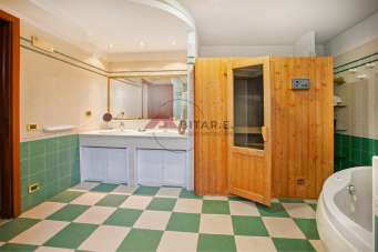 - grande bagno attrezzato come spa, con vasca idromassaggio, doccia ampia e doppio lavandino.