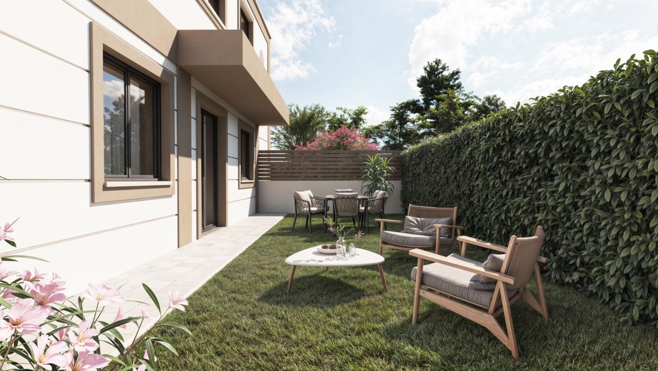 In nuova palazzina di sole 7 UNITA´ in ´´classe energetica A4´´ immersa nel verde, comoda al centro commerciale ´´Il Melograno´´ e a tutti i servizi, proponiamo in vendita APPARTAMENTO al PIANO TERRA con INGRESSO INDIPENDENTE e GIARDINO PRIVATO di 116 Mq. L´immobile è composto da soggiorno con angolo cottura, 3 CAMERE da letto, 2 BAGNI, GARAGE e 2 POSTI AUTO PRIVATI compresi.