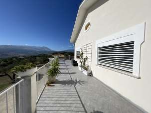 Alanno: in posizione rialzata e panoramica, a pochi chilometri da tutti i servizi VENDESI prestigiosa Villa Singola di recente costruzione (2010) con annesso terreno circostante recintato di circa 1 ettaro. L´immobile si sviluppa su due livelli ed è composto da abitazione al piano primo con ingresso, ampio soggiorno, cucina abitabile, disimpegno, due camere da letto, bagno, ripostiglio e maestoso terrazzo di mq 120 con splendido affaccio su tutta la vallata pescarese con vista Mare e Maiella. Il piano terra attualmente è adibito a locali annessi, magazzino e rimessaggio attrezzi agricoli, con possibilità di realizzazione di seconda unità abitativa. La Villa è dotata di pannelli solari, impianto di riscaldamento a pavimento tramite pompa di calore (da ripristinare), climatizzatori, zanzariere e molto altro. Prezzo leggermente trattabile