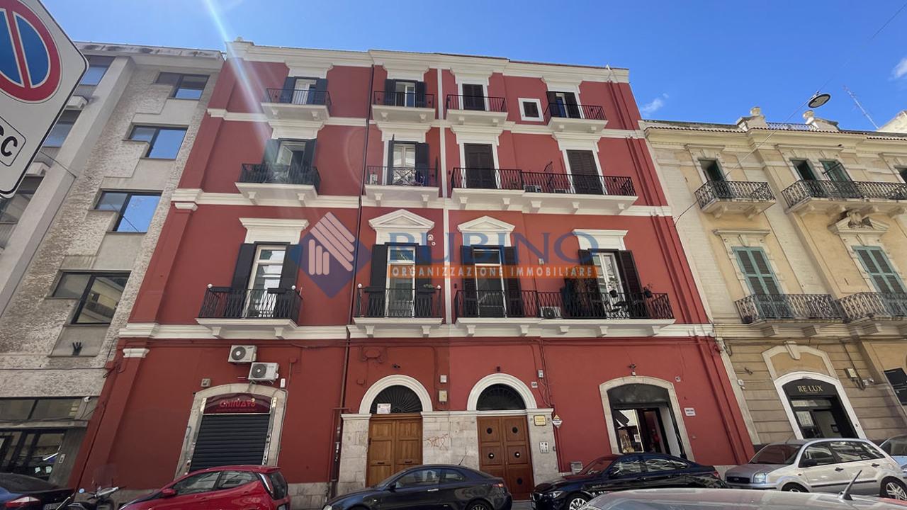 Murat, in via Dante angolo via Roberto Da Bari, proponiamo in locazione appartamento ristrutturato situato al primo piano con ascensore e così composto: Ingresso disimpegno, soggiorno, cucina, vano letto, cameretta, bagno. Balcone interno. Completo di arredi e con riscaldamento autonomo. Si fitta con contratto transitorio 12 max 18 mesi.