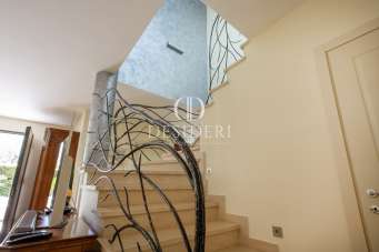 D/CD3649 - L´agenzia immobiliare ´´Desideri´´ propone prestigiosa villa, in zona regioni. La disposizione interna degli spazi risulta essere estremamente razionale, un´ampia e luminosissima zona living con cucina attrezzata e sala pranzo studiata in ogni suo dettaglio, con accesso al giardino, che circonda l´immobile, ideale per momenti di convivialità ed un affascinante bagno al piano terra. Al piano superiore trova spazio la zona notte con tre camere da letto, uno studio, due balconi e doppio servizio. Al piano interrato, un ulteriore spazio che la proprietà ha sfruttato come fuga dal quotidiano ricreando un ambiente con una vera e propria zona di completo relax. Offre confortevoli spazi all´interno, dotati da materiali di pregio, e spazi esterni vivibili arricchiti da un rigoglioso giardino, che ne garantisce la totale privacy. A corredo della proprietà garage di 43 mq. La proprietà è completa di impianto di climatizzazione, impianto di allarme volumetrico e perimetrale, predisposizione per pannelli solari e per caldaia a pellet, parquet, infissi in legno con doppi vetri e caldaia a condensazione.