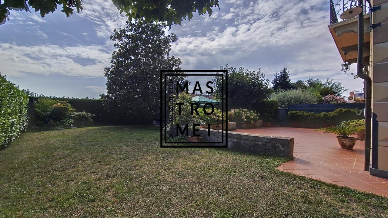 La villa è circondata da un giardino, sia a sud che a nord, e dispone di tre ingressi pedonali e un cancello automatico per l´accesso in auto. Ci sono anche due terrazzi, uno dei quali fornisce accesso a due camere comunicanti sul lato sud, mentre l´altro si trova sul lato est. La proprietà, che si estende su circa 700 metri quadrati, include un sottotetto utilizzabile come ripostiglio anch´esso finemente ristrutturato.