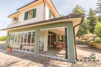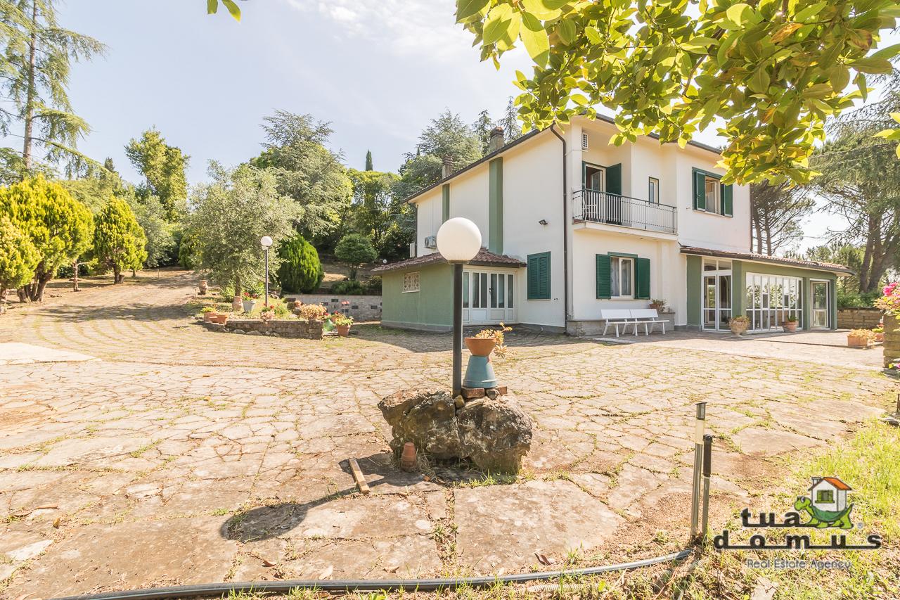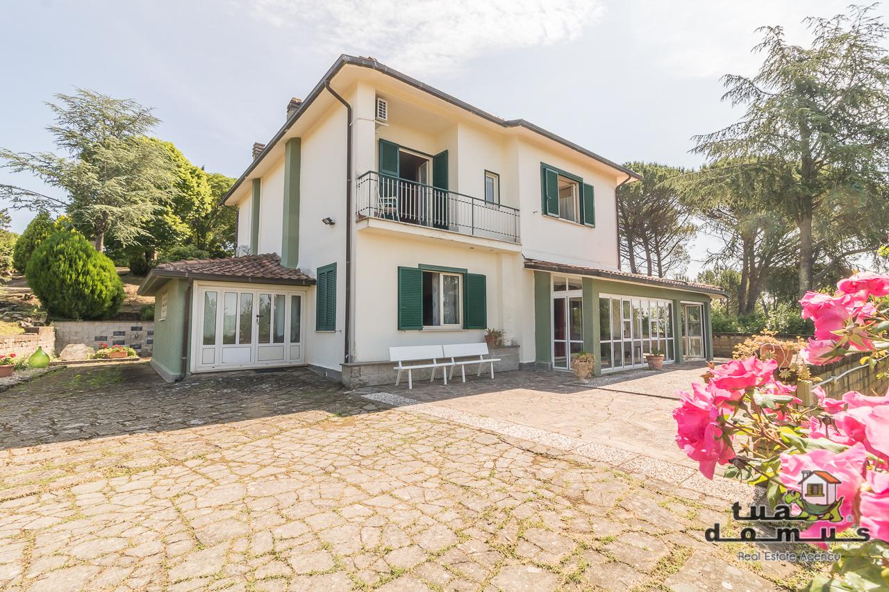 A Sutri, all´interno della rinomata zona residenziale di San Benedetto, in posizione alta e panoramica con esposizione a sud, proponiamo in vendita un´ incantevole villa unifamiliare circondata da un ampio parco di circa 3500 mq. La casa, realizzata a metà degli anni 70´, dispone di ambienti grandi e luminosi. Al piano terra una grande veranda chiusa a vetri circonda l´abitazione composta da un comodo ingresso, un soggiorno comunicante con la sala da pranzo, una cucina abitabile e un bagno con doccia. Una comoda scala ci accompagna alla zona notte che offre un secondo salottino, quattro camere da letto, di cui tre climatizzate con bagni privati e due balconi panoramici. Sempre al piano terra troviamo una stanza ad uso magazzino e al piano interrato una cantina. Completa la proprietà una depandance di circa 40 mq dove è stata realizzata una deliziosa suite con bagno con doccia e un piccolo cucinotto. La villa attualmente utilizzata come struttura recettiva è ideale per chi è alla ricerca di una proprietà indipendente in totale privacy inserita però all´interno di un complesso residenziale facilmente raggiungibile sia dalla cassia che dall´interno del paese di Sutri. ll presente annuncio non costituisce elemento contrattuale. Le informazioni riportate sono solo a titolo esemplificativo.