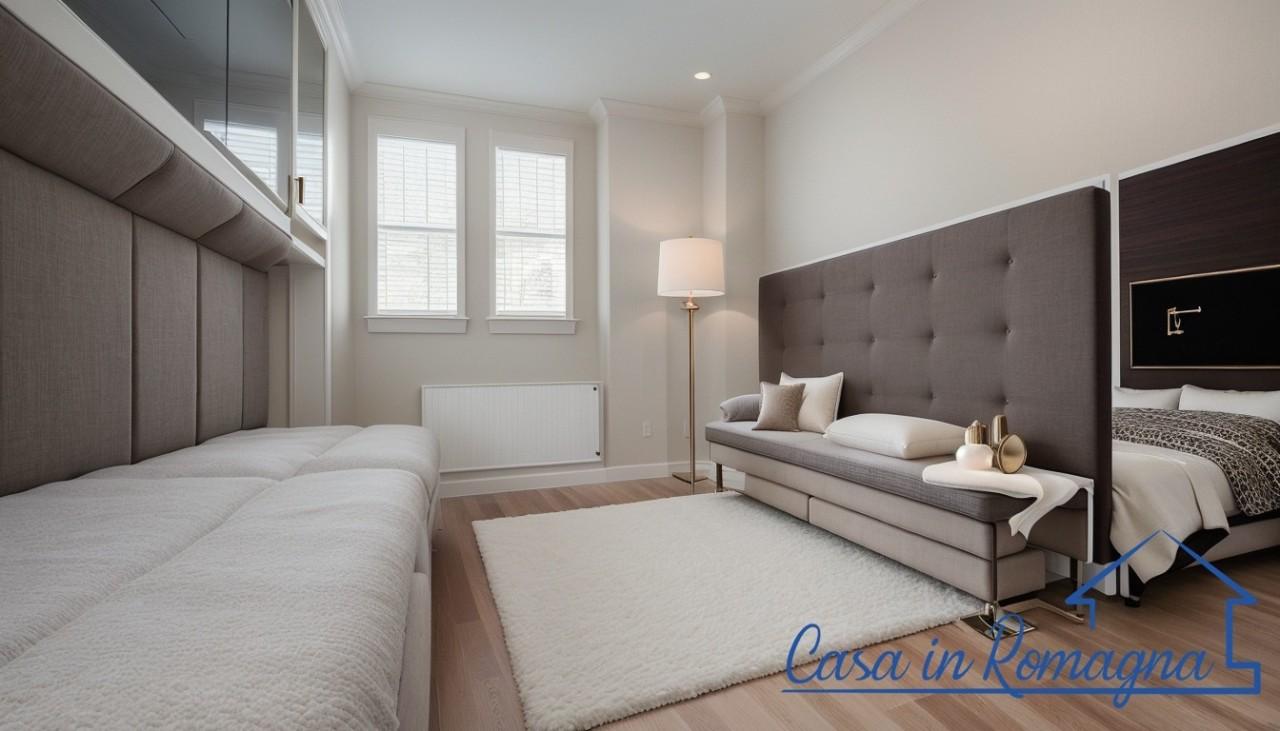 L’appartamento accoglie i suoi ospiti con un luminoso soggiorno, perfettamente integrato con l’angolo cottura, da cui si accede a un ampio balcone ideale per momenti di relax all’aperto. La zona notte è composta da una spaziosa camera matrimoniale dotata di cabina armadio e balcone privato, perfetta per garantire comfort e privacy, e da una seconda camera doppia, ideale per ospiti o per i più piccoli. Completano la proprietà due bagni, progettati con cura per offrire funzionalità ed eleganza.