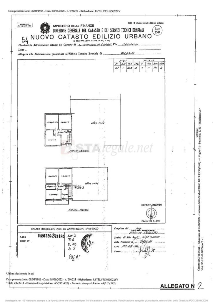 Proponiamo all´asta Lotto Unico - piena proprietà delle unità immobiliari facenti parte del fabbricato sito in Comune di SAN MARTINO PADOVA precisamente VIA GARIBALDI 152, della superficie commerciale complessiva di mq 172.