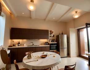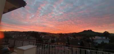L´appartamento e´ dotato di ampio salone con camino, cucina con travi a vista bianche con uscita sul terrazzo, il terrazzo in parte e´ di proprieta´ esclusiva in parte condominiale ma con accesso diretto , il panorama e´ meraviglioso si scoprono le colline marchigiane e i monti sibillini, si puo´ godere di panorami mutevoli nei colori, albe e tramonti incantevoli visibili anche dalle ampie finestre della zona giorno.