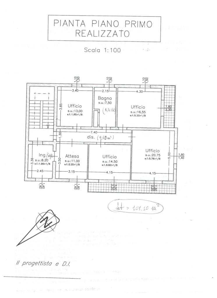In zona centrale si vende ufficio di mq. 100, posto al piano primo, suddiviso in 6 locali oltre al bagno. Facilità di parcheggio nella zona.