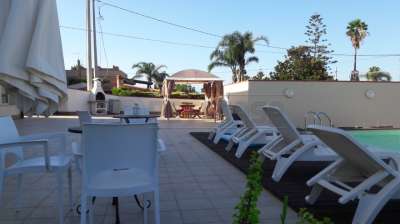 La villa insiste su un lotto di 1350 mq ed è disposta su due livelli. Al piano terra troviamo due appartamenti di 45 mq di cui uno con veranda esterna ed uno di 69 mq mentre al primo piano troviamo due appartamenti di 45 mq di cui uno con veranda esterna ed uno di 69 mq, è presente anche una depandance di 48 mq distaccata dalla villa. Tutte le camere sono dotate di climatizzatori. All’esterno è presente un solarium attrezzato ed una piscina.