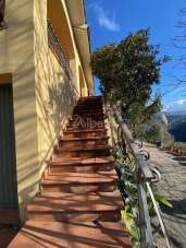 In vendita casa indipendente vista mare con giardino a Sarzana - RIF IN185 - In località Bradia di Sarzana, in provincia di La Spezia, vendesi villa in posizione collinare con ottima esposizione solare e vista su tutta la vallata, mare e Apuane, fino all´Isola d´Elba nelle giornate più terse. L´immobile è suddiviso in due unità abitative indipendenti. Piano Terra: cucina, salotto, due camere matrimoniali, ampio bagno con vasca e doccia. Piano Primo: ampio portico d´ingresso con terrazza panoramica, salone, cucinotto collegato al tinello che accoglie il camino a legna, due camere, due bagni, oltre alla camera mansardata raggiungibile tramite la scala interna, con la sua panoramica terrazzina a tasca. La proprietà si dota di ampio garage, cantina, oltre e due legnaie, molto comode, ed un locale tecnico che serve entrambe le unità. Area pavimentata attrezzata, piacevole terreno circostante che ospita un piccolo uliveto, per complessivi mq 3000 circa. Buone le rifiniture generali, posizione tranquilla, estremamente panoramica, immersa nel verde, a pochi minuti di automobile dai principali servizi. Soluzione perfetta per famiglie che apprezzano il piacere di vivere in collina, lontano dal caos cittadino, vista aperta e panorami molto suggestivi, dall´alba al tramonto.
