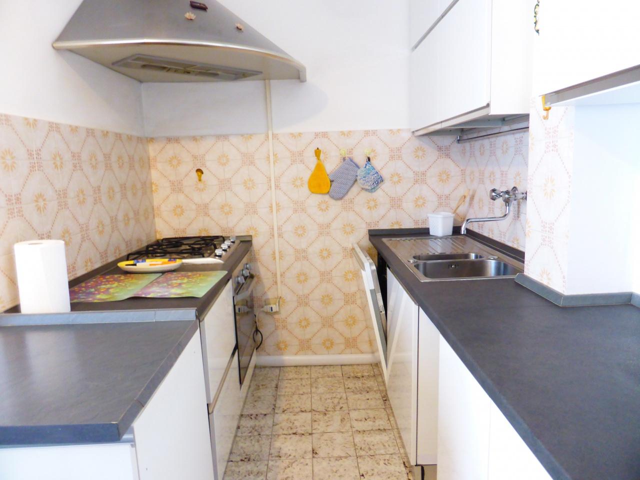 Trilocale al quinto piano con ascensore, composto da cucina con piccolo balcone di servizio, camera matrimoniale, soggiorno con divano letto e bagno. Ampio terrazzo a L, con accesso sia dalla camera che dal soggiorno, con vista sulla pineta. Posto auto ad uso esclusivo nella corte condominiale. 4 posti letto. 190 Metri dal mare. Lavastoviglie.