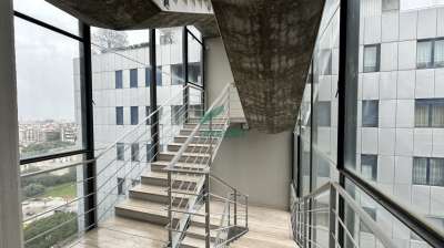 L’ufficio si sviluppa su una superficie di 170 mq, sapientemente distribuiti in quattro ampie camere luminose, una sala riunioni di rappresentanza e due bagni. Gli spazi, caratterizzati da doppi affacci panoramici, garantiscono luminosità naturale per tutto l’arco della giornata, creando un contesto piacevole e produttivo.