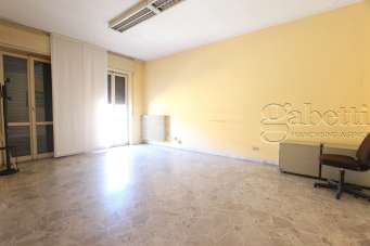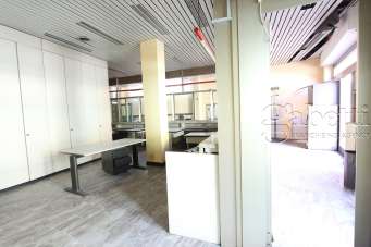 La porzione si compone di una porzione commerciale al piano terreno che caratterizzata da forma fisica rettangolare il cui lato minore fronteggia via Roma (due vetrine). Direttamente collegata al piano terreno attraverso una scala in muratura, la porzione ad uso ufficio/archivio al livello primo, caratterizzata dalla presenza di due livelli sfalsati di circa un metro di altezza.