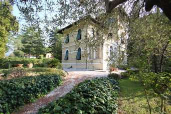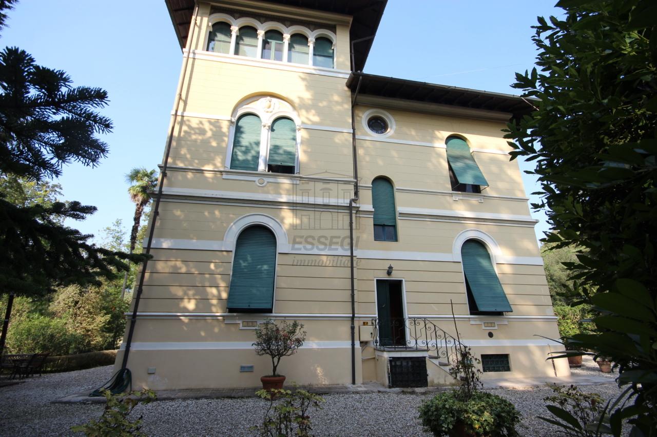 Ubicata a 5 km dalle mura di Lucca in una zona molto verde e boschiva, villa stile liberty perfettamente mantenuta con tutti i materiali di periodo. Il complesso è costituito da una fabbricato principale e da un grande annesso distaccato per un totale di circa mq.400 oltre a cappella privata, annesso ripostiglio , garage, forno, appartamento per custode di circa mq.100 . Il terreno di circa.7.000 mq.in parte giardino e bosco. La casa padronale ( villa) si compone al piano seminterrato di cantina con vari locali di servizio. Al piano terra di: ampia veranda chiusa, ingresso, salone, cucina, sala pranzo con caminetto, studio wc. Con una ampia scala in marmo pregiato si sale al piano primo composto di: quattro camere, due bagni e ampia terrazza dalla quale si gode la vista del territorio. Al piano secondo troviamo in una torretta bellissima altana/solarium. Perfette condizioni di manutenzione generali. 1.600.000 Rich.