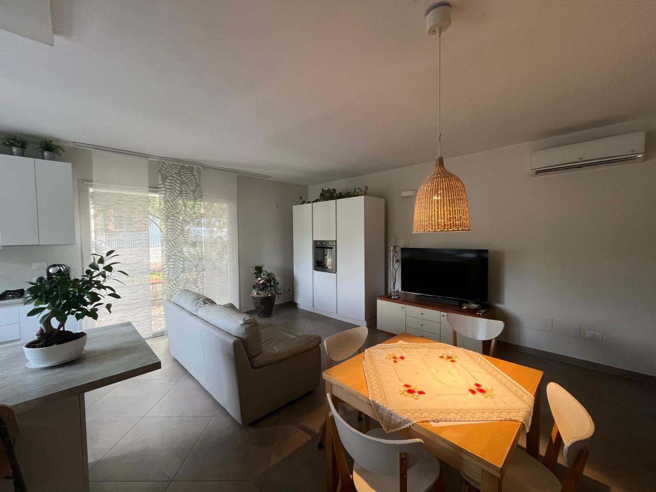 PIETRACUTA, in zona tranquilla, vendesi porzione di villetta bifamiliare indipendente al piano terra, formata da un appartamento nuovissimo, completamente ristrutturato nel 2020 con eleganti rifiniture e con impianti di ultima generazione come riscaldamento a pavimento, infissi in pvc con triplo vetro che hanno permesso di avere una buona classe energetica. L´immobile è formato da un ampio soggiorno con angolo cottura, due camere da letto di cui una con cabina armadio ed entrambi con porta finestra che da l´accesso al giardino e alla corte circostante comune con i proprietari del piano primo, un bagno, una lavanderia facilmente trasformabile in secondo bagno, garage, posti auto esterni e un bellissimo giardino indiviso che ti permette di vivere appieno la tranquillità del luogo.