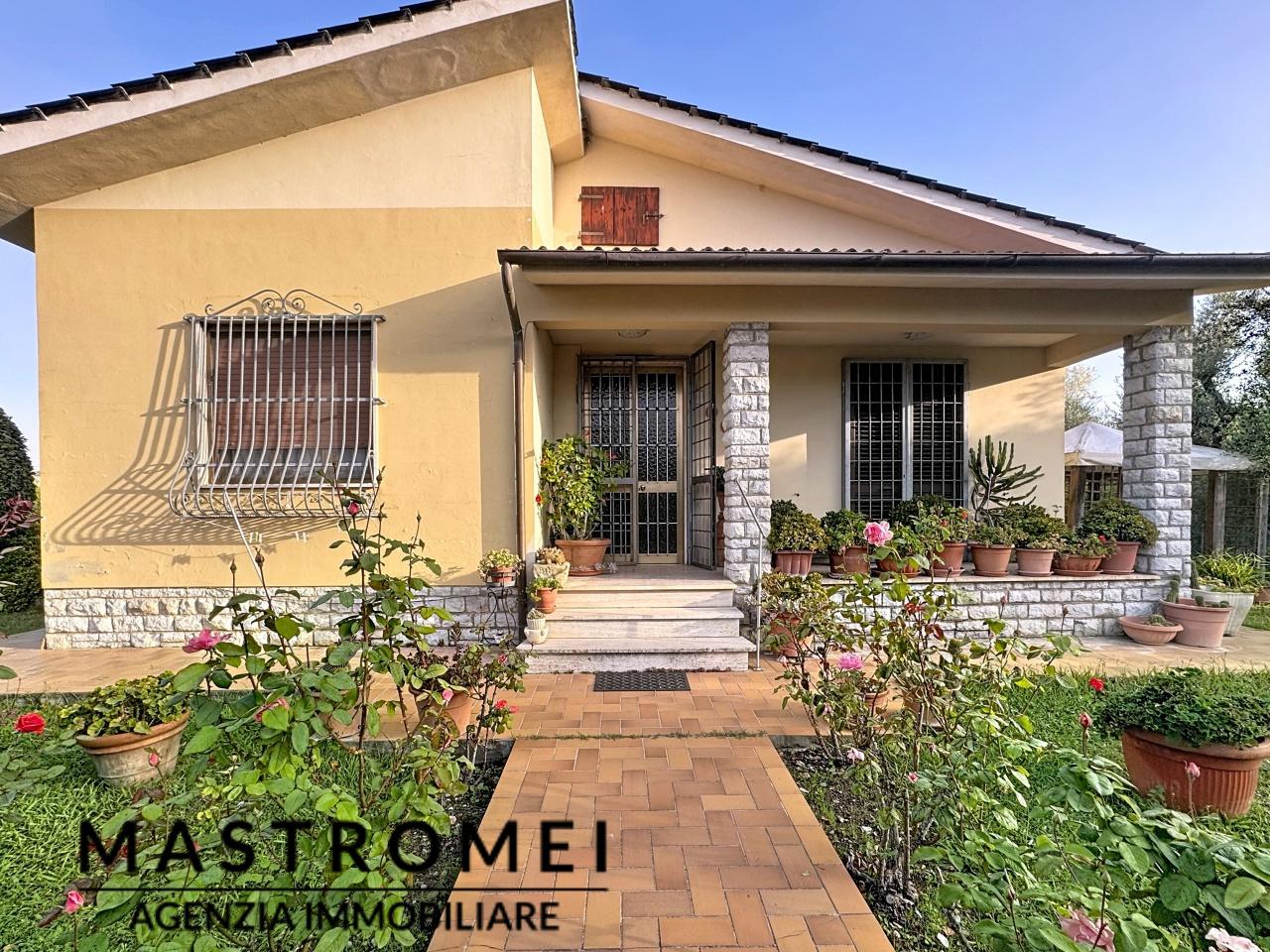 ESCLUSIVA - Villetta singola con giardino in vendita a Montecarlo (LU) In posizione tranquilla e soleggiata, a breve distanza dal centro di Montecarlo, proponiamo in esclusiva villa singola libera su quattro lati con ampio giardino privato, ideale per chi desidera vivere immerso nel verde senza rinunciare alla comodit dei servizi. Caratteristiche principali Superficie abitativa: circa 150 m su unico livello oltre taverna e locali accessori al piano seminterrato Composizione: ingresso, luminoso soggiorno con affaccio sul portico, cucina abitabile, tre camere da letto e bagno principale. Piano seminterrato: ampi locali di servizio, lavanderia, cantina e garage. Esterni: bellissimo giardino recintato di circa 800 m, curato e piantumato, con gazebo e area relax. Accesso carrabile privato con cancello automatico e ampio spazio di manovra e parcheggio. Dettagli costruttivi Struttura in ottimo stato, con murature solide e rivestimenti in pietra a vista esterni Infissi in legno e inferriate di sicurezza. Tetto e facciate ben mantenuti. Impianto di riscaldamento autonomo a metano. Possibilit di realizzare ampliamento della superficie esistente. Spazi esterni e pertinenze Completano la propriet due annessi esterni utilizzabili come rimessa o laboratorio e un´ampia zona coperta perfetta per ricovero auto o attivit hobbistiche. Posizione L´immobile si trova in zona collinare , a pochi minuti da tutti i servizi, non isolata, ben collegata alla viabilit principale ma nella quiete tipica delle colline lucchesi. Contatti: Immobiliare Mastromei -- Via Marconi 24, Altopascio (LU) - 3480045386 - 3319647751 - 3480045391 www.immobiliaremastromei.it - SC9477227