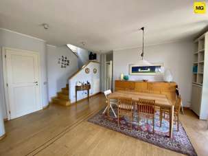 - Piano seminterrato: ulteriore appartamento composto da ingresso, ampio e luminoso soggiorno con accesso diretto al giardino, cucina abitabile, disimpegno notte, camera da letto, due bagni e uno studio con grandi vetrate sul giardino.