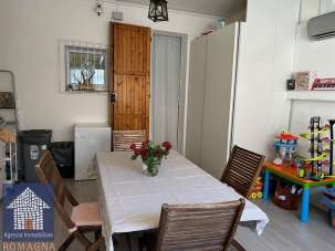 Lido Adriano - Viale Michelangelo - In zona ben servita e vicinissima al mare, proponiamo villetta a schiera ottimamente rifinita. Si accede alla soluzione dal piano terra con giardino sul fronte e pergolato con giardino e barbecue sul retro. La zona giorno è composta da un luminoso soggiorno con cucina a vista, bagno e ripostiglio. Al primo piano troviamo la zona notte con camera matrimoniale con cabina armadi e balcone, cameretta con balcone e bagno finestrato con doccia. Sottotetto. Impianto idrico ed elettrico a norma, condizionatori, infissi nuovi con doppio vetro in pvc e zanzariere. Riscaldamento autonomo. Antifurto. Classe energetica E