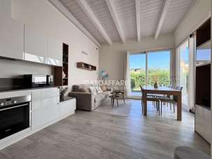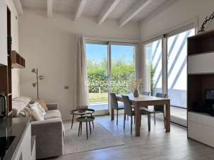 Nella frazione di Rivoltella in contesto residenziale con piscina proponiamo in vendita una villettina trilocale con ingresso indipendente e giardino privato di 75mq . La proprietà è composta da portico all´ingresso, soggiorno con cucina a vista, un bagno finestrato, una camera matrimoniale ed una cameretta. La zona giorno è molto luminosa, offre una grande apertura verso il pergolato in legno deck ed il giardino piantumato con erba naturale. La casa si vende completamente arredata come si vede nelle fotografie. Il riscaldamento è a pavimento centralizzato\autonomo, aria condizionata, predisposizione allarme, cassaforte, porta blindata. Completa la proprietà un garage di 30mq e una cantina nell´interrato, oltre a due posti auto esterni privati al piano strada.