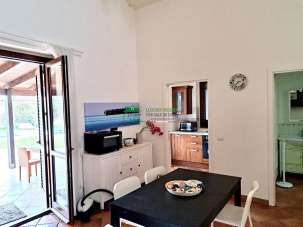 L´ immobile sorge su un lotto di terreno di circa 1000 mq. E´ composto all´interno da un ampio soggiorno, un vano con angolo cottura, tre camere da letto, un bagno ed un doppio servizio con lavanderia. All´ esterno la casa è circondata da un giardino di circa 800 mq con piscina e spaziose verande con tettoia per godersi le giornate estive all´aria aperta.